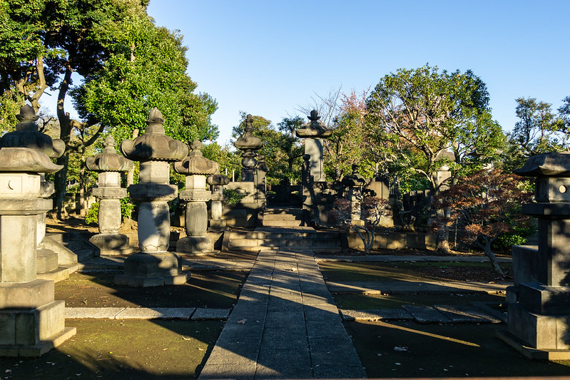 Many historic Japanese are interred in Yanaka cemetery including Tokugawa Yoshinobu. Hi death marked the end of an era in Japan. He is interred in a gated section of the cemetery along with other members of the Tokugawa clan.